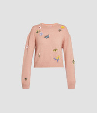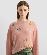 Knitted from a textural alpaca and wool blend, this pink jumper has dropped shoulders for a relaxed mood. Colourful embroidery – showcasing butterflies, bugs, and flowers – pays homage to the curious mind of the season’s muse, Maria Sibylla Merian. - Classic fit - Midweight knit - Crew neck - Dropped shoulders - Long sleeves - Ribbed cuffs and hem - Product code: PS26_KT39_30035006 Relaxed fit. For a closer fit, recommend sizing down.Model is 5'9 (175cm) and wears a size UK 8. Fabric and Care 41% Polyamide, 38% Alpaca, 21%Wool. Dry clean.