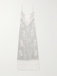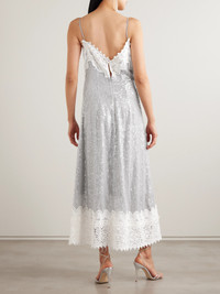 Embellished Lace-trimmed Sequined Georgette Midi Dress