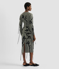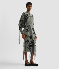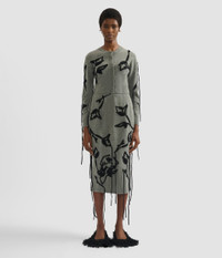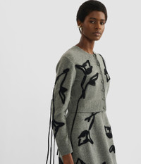 This cropped cardigan is knitted from grey extra fine merino wool. It is embroidered with black flowers. - Cropped fit - Lightweight knit - Crew neck - Centre front button fastenings - Long sleeves - Ribbed cuffs and hem - Floral embroidery - Product code: AW25_KT28_30151003 Fits true to size. Model is 5'11½ (181cm) and wears a size S. Fabric and Care 100% Extra Fine Merino Wool. Dry clean.