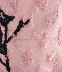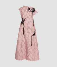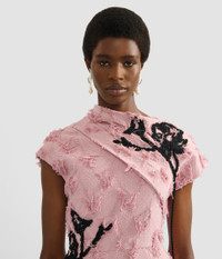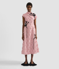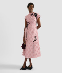This antique-pink dress is crafted from fil coupe paisley jacquard and adorned with black vignette threadwork applique. - A-line silhouette - Fully lined - Ankle length - Asymmetric neck - Asymmetric sleeves - Centre back hook, eye, and concealed zip fastenings - Hidden pockets - Product code: AW25_D174_50615010B Fits true to size. Model is 5'11 (180cm) and wears a size UK 8. Fabric and Care 95% Viscose, 5% Polyamide. Lining: 100% Silk. Embossing: 45% Wool, 45% Acrylic, 10% Nylon. Dry clean.