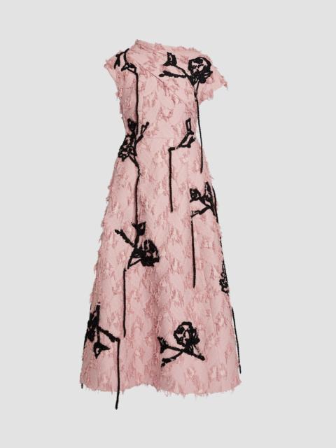 EMBROIDERED FIL COUPÉ JACQUARD ASYMMETRIC MIDI DRESS