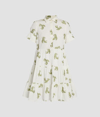 This ivory dress is made from fil coupe jacquard and features raised green foliage. It is shaped for a relaxed fit with a point collar, tiered hem and short sleeves. Relaxed silhouette Partially lined Knee length Point collar Short sleeves with deep cuffs Tiered hem Centre front button fastening placket Product Code: VC25_D49_IVFFC Fits true to size. Designed for a loose fit. Model is 5'8½ (174cm) and wears size UK 6. Fabric and Care Main: 98% COTTON 2% POLYESTER Secondary: 100% COTTON T:100%COTTON