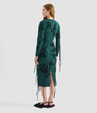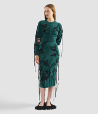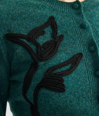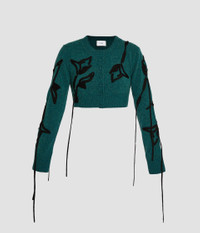 Knitted from green extra fine merino wool, this cardigan is embroidered with black flowers. - Cropped fit - Crew neck - Centre front button fastenings - Long sleeves - Ribbed cuffs and hem - Floral embroidery - Product code: AW25_KT28_30153007 Fits true to size. Fabric and Care 100% Extrafine Merino Wool. Dry Clean.