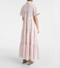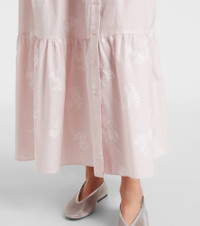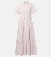Embroidered tiered cotton shirt dress