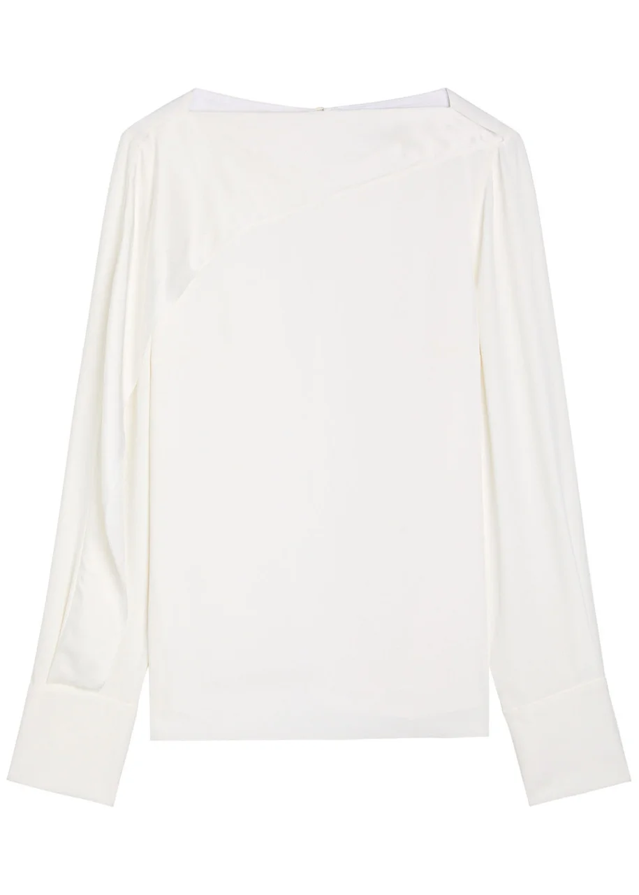 Info & Care Erdem;crepe top Wide-neck, draped crepe de chine overlay through neck and sleeve, button-fastening cuffs, fully lined Button-fastening keyhole at back neck 71% acetate, 29% viscose; lining: 100% silk Dry clean Size & Fit Length shoulder to hem: 24.5 inches/ 62cm Midweight Loose fit Model is 5'9"/ 175cm and wears a size UK8