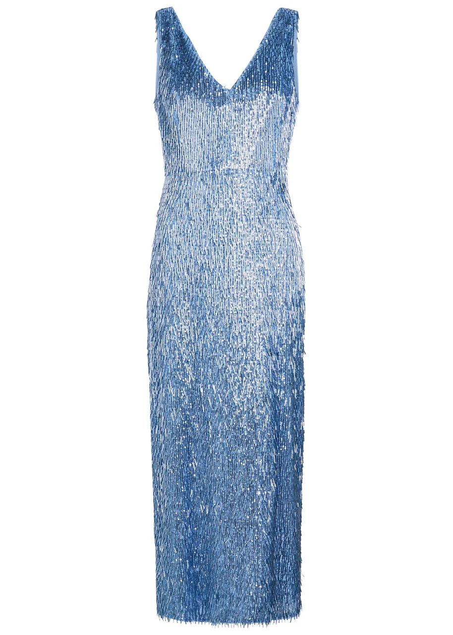 Erdem Embellished V-neck Mesh Midi Cocktail Dress