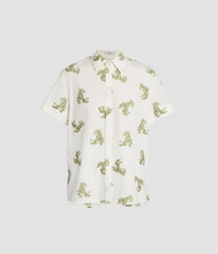 This lightweight shirt shapes a relaxed, boxy silhouette and is cut from cotton jacquard fil coupe with slightly raised green flowers. - Boxy silhouette - Unlined - Shirt collar - Short sleeves - Centre front button-fastening placket - Product Code: VC25_T20_IVFFC Fabric and Care 98% Cotton 2% Polyester.