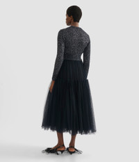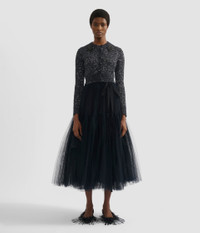 Shaped for a close, cropped fit, this black cardigan is knitted from mouline yarns combining alpaca and tiny silver sequins. Further embellishment comes from floral appliques, intricately hand-encrusted with crystals. - Cropped silhouette - Lightweight knit - Crew neckline - Long sleeves - Centre front button fastenings - Ribbed trims - Crystal embellishment - Product code: HO26_HO2KT1_30081000 Fits true to size. Fabric and Care Main: 70% Alpaca, 30% Polyamide. Secondary: 55% Polyamide, 45% Polyester. Embroidery: 60% Glass, 30% Brass, 10% Acrylic. Dry clean.