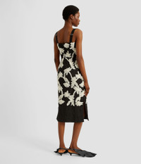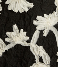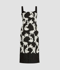 This black pencil dress is crafted from cloque jacquard with hand embroidered floral motifs made from white silk ribbon. - Pencil silhouette - Fully lined - Midi length - Bandeau neckline - Shoulder straps - Centre back hook, eye, and concealed zip fastenings - Product code: PF25_D123_80031000 Fits true to size.Model is 5'11" (180cm) and wears a size UK 8. Fabric and Care Main: 83% Polyester, 17% Polyamide. Secondary: 100% Silk. Lining: 100% Silk. Embroidery: 100% Silk.