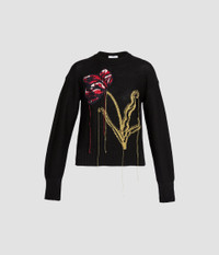 This black merino wool jumper is intarsia-knitted with an oversized red tulip motif and finished with embroidery. - Classic fit - Midweight knit - Crew neck - Long sleeves - Ribbed cuffs and hem - Tulip intarsia and embroidery - Product code: PS26_KT36_30171000 Fits true to size. Fabric and Care 100% Fine Merino Wool. Dry clean.