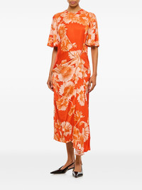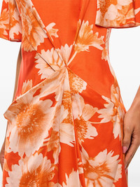pinched-detailing dress Highlights - Lava orange - Concealed rear zip fastening - All-over floral print - Pinched detailing - Short sleeves Imported Composition Viscose 100%