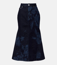Floral flared denim midi skirt