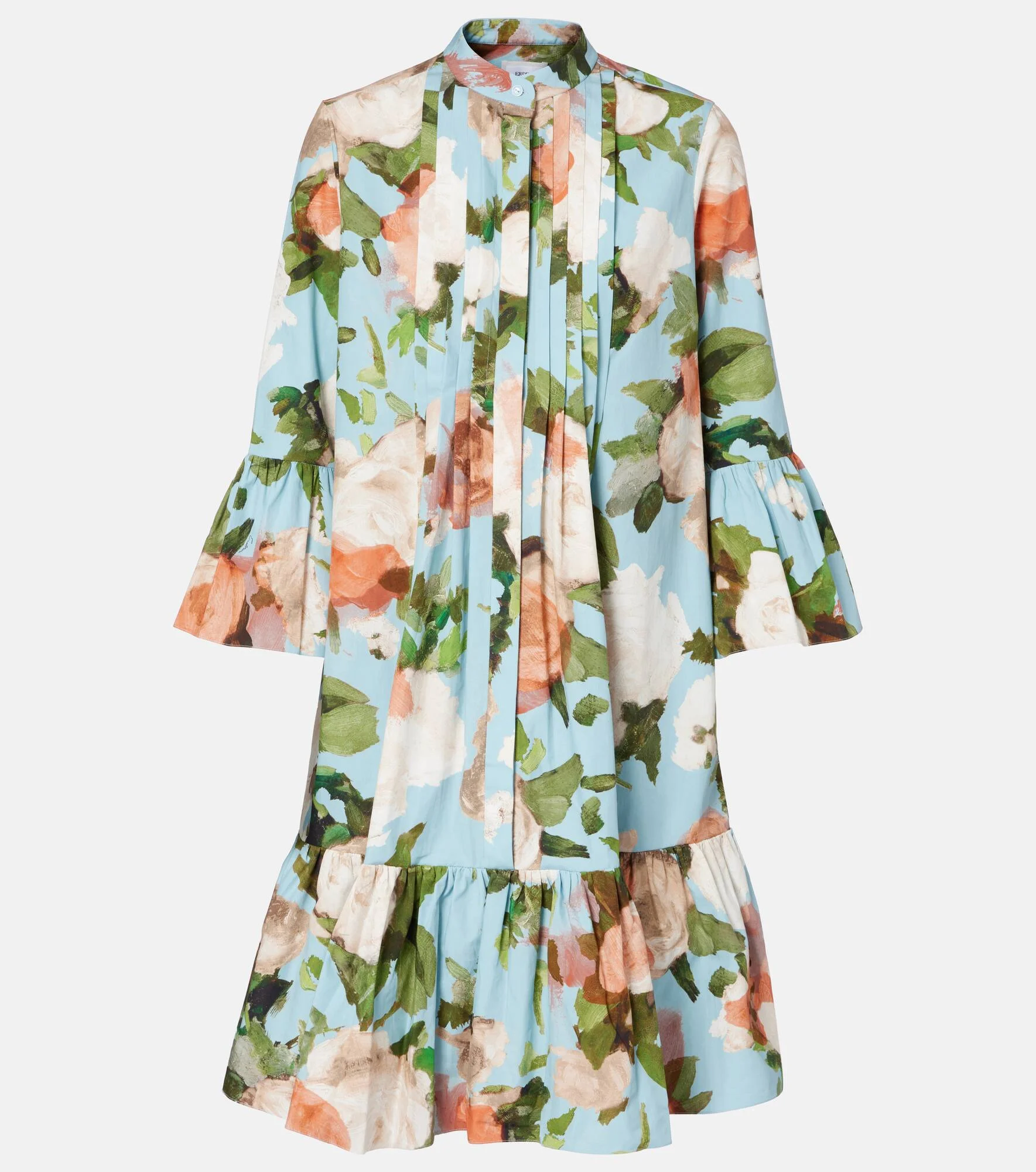 Erdem is known for its romantic aesthetic, and this minidress is no exception. Crafted from airy cotton-poplin, this piece features a blooming floral print and a gathered silhouette that flows gracefully with every step. Product Details - Material: 100% cotton - Care instructions: machine wash at 40 degrees - Made in Bulgaria - Designer color name: Painted Rose Dream Blue - Item color: blue, multicolor - Closure: concealed button placket - Collar: band - Cuff: frilled - Unlined - Item number: P01057953 Size & Fit - True to size - Designed for a loose fit - Non-stretchy fabric - The model seen in the picture is 178cm-5'10" and wearing a size UK 8