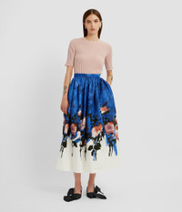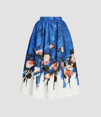 This A-line skirt is made from cotton faille for a structured, A-line silhouette. It is printed with blue brushstrokes and pink roses. - A-line silhouette - Partially lined - Midi length - Centre back hook, eye, and concealed zip fastenings - Hidden side seam pockets - Product code: PF25_S902S_50064003 Fits true to size. Fabric and Care 66% Cotton, 34% Viscose. Lining: 100% Silk. Dry clean.
