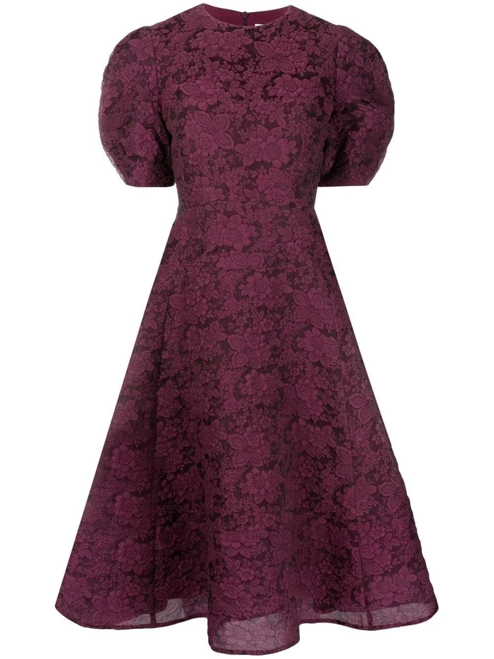 floral print A-line dress mulberry purple cotton blend silk blend all-over floral print semi-sheer overlay high neck short puff sleeves A-line skirt rear zip fastening Imported Composition Outer: Cotton 44%, Polyamide 36%, Polyester 20% Lining: Acetate 73%, Silk 27% SIZE & FIT Model measurements Height 5 ft 10 in(1.79 m) Bust/Chest 31.49 in(80 cm) Hips 35.03 in(89 cm) Waist 23.62 in(60 cm) FittingInformation This piece fits true to size. We recommend you get your regular size Designed for a close fit at the bust and waist, but loose at the hip Made with a lightweight non-stretch fabric Washing instructions Dry Clean Only