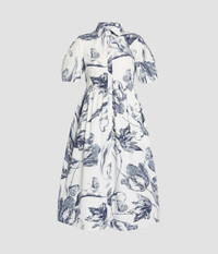 Cut from heavy cotton poplin for a full-skirted silhouette, this ivory dress is printed with midnight botanical illustrations inspired by scientific drawings by naturalist Maria Sibylla Merian. - Fit and flare silhouette - Unlined - Midi length - Shirt collar - Short sleeves - Centre front button fastenings - Hidden side seam pockets - Product code: PS26_D198_51069002 Fits oversized, recommend sizing down from your usual size for a closer fit. Fabric and Care 100% Organic Cotton. Lining: 100% Cotton. Dry clean.