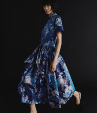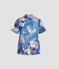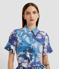 This heavy cotton poplin shirt is printed with an abstract garden-inspired design in shades of cobalt and lavender. - Slim fit - Unlined - Point collar - Short sleeves with flared cuffs - Centre front button-fastening placket - Product code: PF25_T901_50024002 Fits true to size.Model is 5'10" (178cm) and wears a size UK 8. Fabric and Care 100% Cotton. Dry clean.