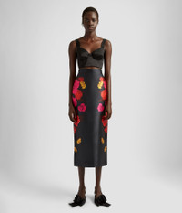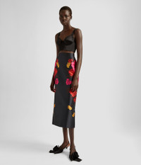 Opera singer Maria Callas inspires the Pre-Fall ’24 collection. Oversized blooms, like the ones printed onto this skirt, are a key motif throughout. Cut from black Mikado for a slim fit, this pencil skirt has a centre back vent for ease of wear. Size and Fit This calf length pencil skirt has a centre back vent. It is fully lined in black silk crepe de chine and has a centre back zip fastening. Fits true to size. Model is 5'10" and wears a size UK 6. Fabric and Care 59% Cotton, 41% Polyester. Lining: 100% Silk. Do Not Machine Wash / Delicate Dry Clean / Do Not Bleach / Do Not Tumble Dry / Cool Iron On Reverse.