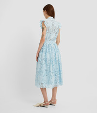 Gathered at the waist, this mid-length skirt cuts a full, A-line silhouette. It is made from blue cotton cutwork featuring a floral design. - A-line silhouette - Fully lined - Midi length - Scalloped hem - Centre back hook, eye, and concealed zip fastenings - Hidden side seam pockets - Product code: PF25_S902N_50154006 Fits true to size.Model is 5'10" (178cm) and wears a size UK 8. Fabric and Care 60% Polyester, 40% Cotton. Fabric 2: 100% Cotton. Lining: 100% Cotton. Dry clean.