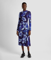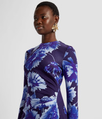 Introduce ERDEM’s signature florals to your daywear rotation with this ponte jersey dress. Cut for a close fit, it is gathered at the hip for the most flattering finish. The indigo fabric is decorated with the season’s Troubridge Floral, based on colour photographs from the 1920s and ‘30s. Size and Fit This mid-length dress has a crew neckline and long sleeves. It is draped at the shoulder and hip. It has hook, eye, and invisible zip fastenings at the centre back.Fits true to size. Fabric and Care 95% Viscose, 5% Elastane. Dry Clean.