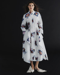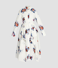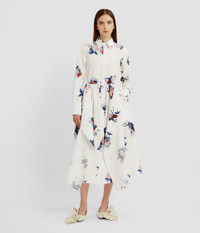 Cut from white cotton poplin, this shirt dress has a draped square skirt. The crisp fabric is printed with painterly rose bouquets. - Fit and flare silhouette - Unlined - Midi length - Point collar - Long sleeves with button-fastening cuffs - Concealed centre front button-fastening placket - Product code: PF25_D104_50019000 Fits true to size.Model is 5'10" (178cm) and wears a size UK 8. Fabric and Care 100% Organic Cotton. Lining: 100% Cotton. Dry clean.