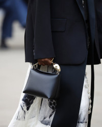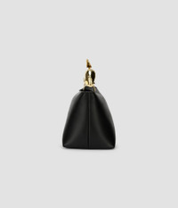 ERDEM introduces its first foray into leather goods with the Bloom Bag. Meticulously crafted in Italy from smooth black leather, this ‘mini’ iteration appeals for both day and evening. It can be carried via the flower bud handle, as a clutch, or worn across the body using the detachable strap. Note the magnetic top closure in the shape of a petal. Size and Fit The Mini Bloom Bag has a detachable leather strap, a gold-tone brass top handle, and a magnetic closure at the flap top. Lined in Kid Suede. L: 16.5cm x W: 11cm x H: 12cm. Fabric and Care 100% Calf Leather. Lining: 100% Kid Suede. Handle: 100% Brass.