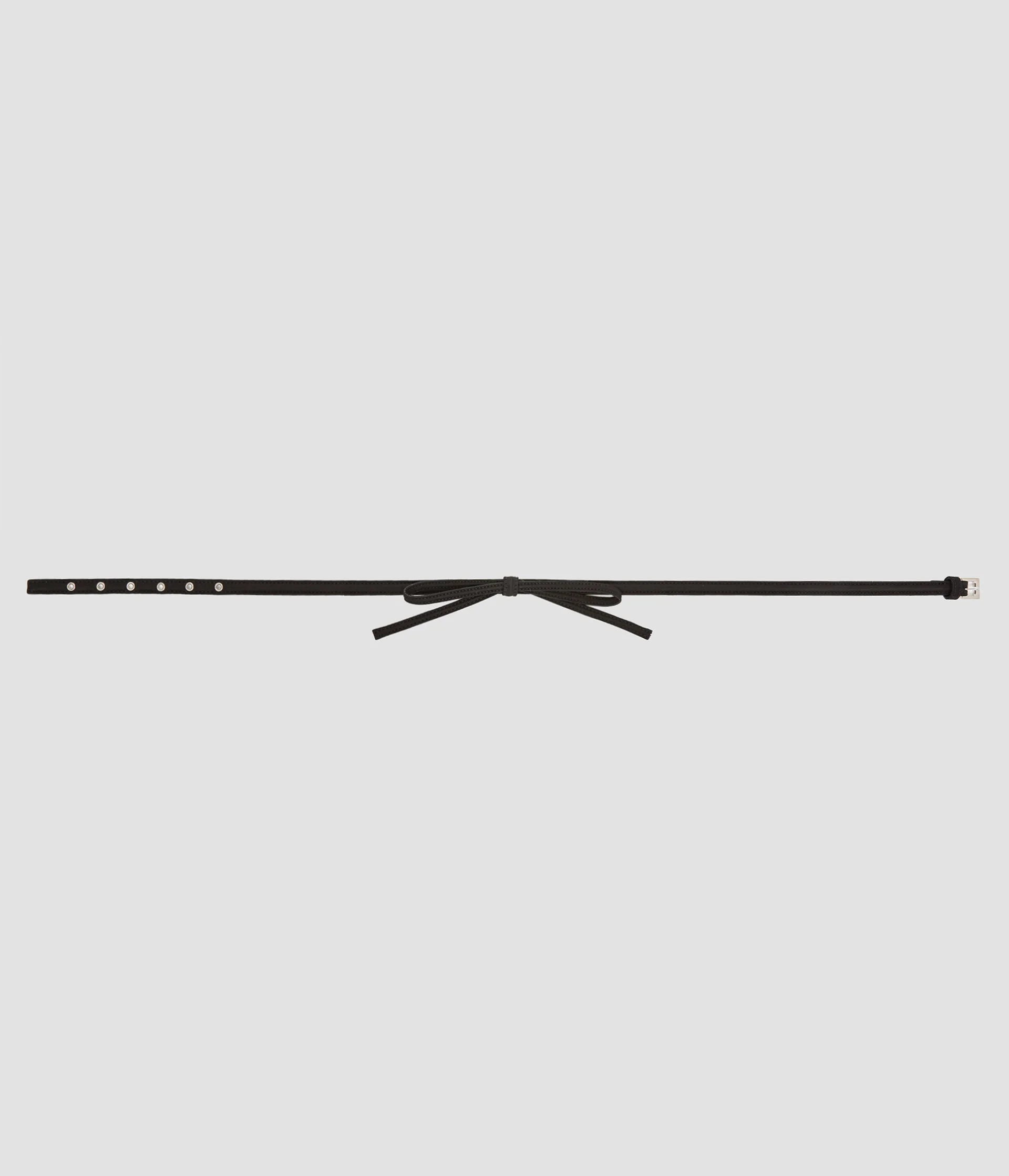 This black satin belt is embellished with a large bow. Fabric and Care 67% Viscose, 33% Polyester. Buckle: 100% Zamak. Spot Clean.