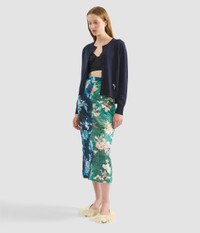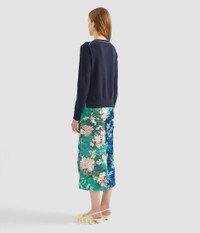 Crafted from panels of duchesse satin in contrasting shades of blue and green, this pencil skirt is decorated with abstract roses. - Pencil silhouette - Fully lined - Midi length - Centre back hook, eye, and invisible zip fastenings - Zigzag raw edge - Product code: AW25_S41_50544001 Fits true to size. Fabric and Care 100% Polyester. Lining: 100% Silk.