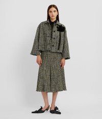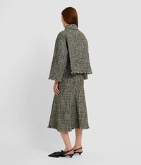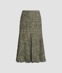 This A-line skirt is made from olive tweed and features a raw-edged hem. - A-line silhouette - Fully lined - Midi length - Centre back hook, eye, and concealed zip fastenings - Raw frayed edge - Product code: PF25_S13_80013004 Fits true to size.Model is 5'10" (178cm) and wears a size UK 8. Fabric and Care 30% Acrylic, 20% Cotton, 17% Recycled Cotton, 11% Polyester, 7% Virgin Wool, 7% Polyamide, 4% Wool, 3% Polyester, 1% Other Fibres. Lining: 100% Silk. Dry clean.