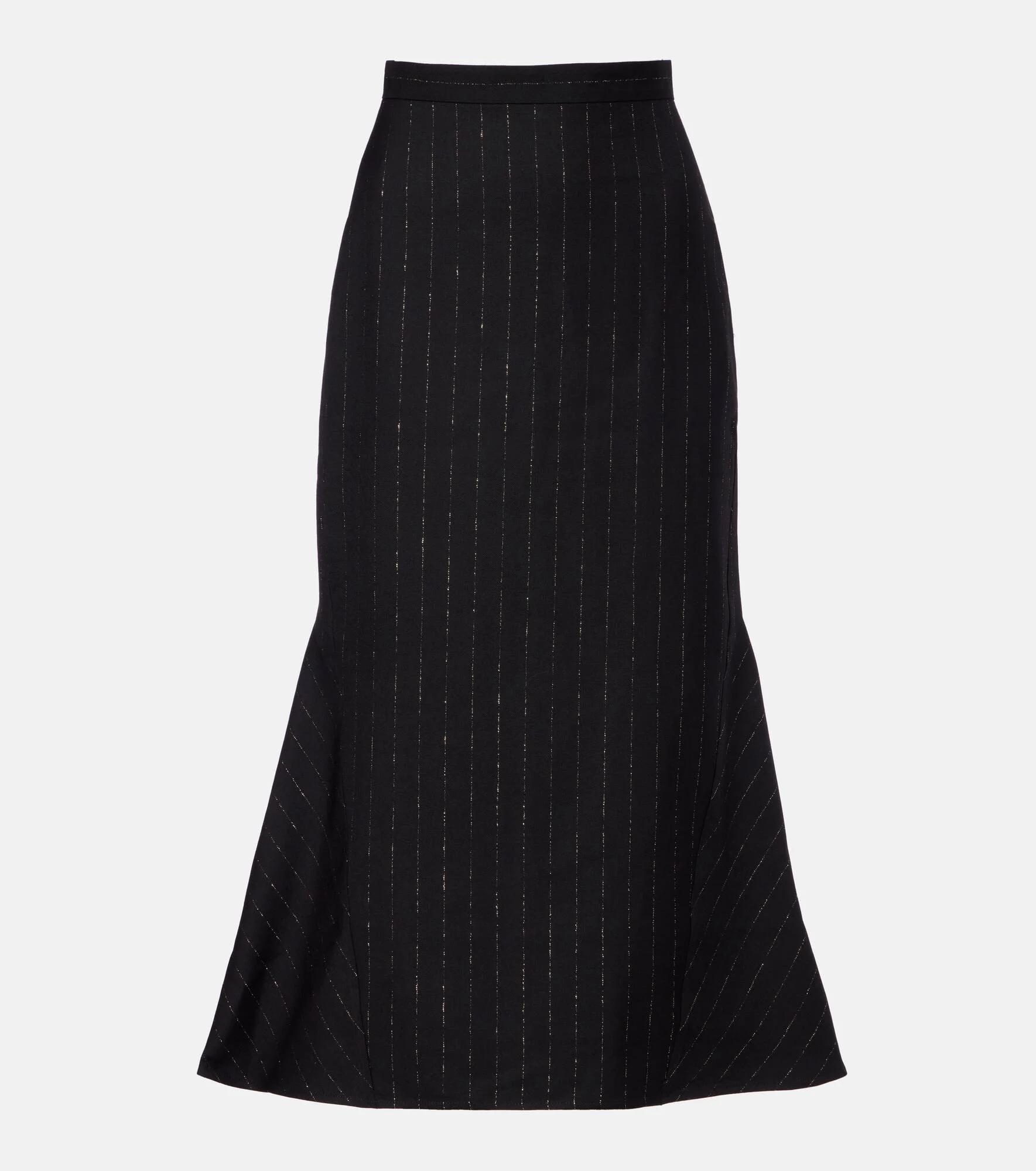 Incorporate modern romance into your edit with Erdem's whimsical and delicate designs. This midi skirt is made from wool and features a delicate pinstripe motif with shimmering threads that give a shiny touch to the look. Product Details - Material: 98% wool, 2% polyester - Care instructions: dry clean - Made in the UK - Color: black - Designer color name: Black+Gold - Item color: black - Lining: 100% silk - Item number: P01081977 Size & Fit - True to size - Non-stretchy fabric - High-waisted - The model seen in the picture is 178cm-5'10" and wearing a size UK 8