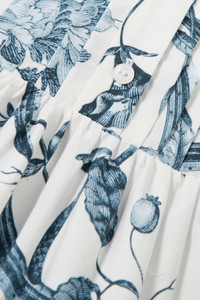 EDITORS'NOTES The 'Ophelia Vine' print decorating Erdem's dress is brought to life by the tiered midi skirt that flutters and bounces with movement. Cut from mid-weight cotton-poplin, it's detailed with neat pintucking. Wear yours with mules and a structured bag in a shade that picks out the blues. SIZE & FIT - Fits true to size, take your normal size - Designed to be slightly fitted at the bust and waist, loose at the hip - Mid-weight, non-stretchy fabric - Model is 180cm/ 5’11” and is wearing a UK 8 DETAILS & CARE - White and tonal-blue cotton-poplin - Button fastenings along front, concealed button and zip fastening at back - 100% cotton - Machine wash or dry clean - Designer color: Ophelia Vine White