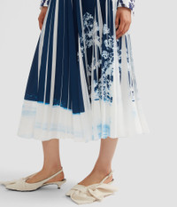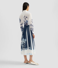 This blue and white A-line skirt is made from lightweight crepe de chine. It is pleated to create breaks in the print. - A-line silhouette - Fully lined - Midi length - Centre back hook, eye, and concealed zip fastenings - Product code: PF25_S29_50204001 Fits true to size. Fabric and Care 100% Polyester. Lining: 100% Silk. Dry clean.