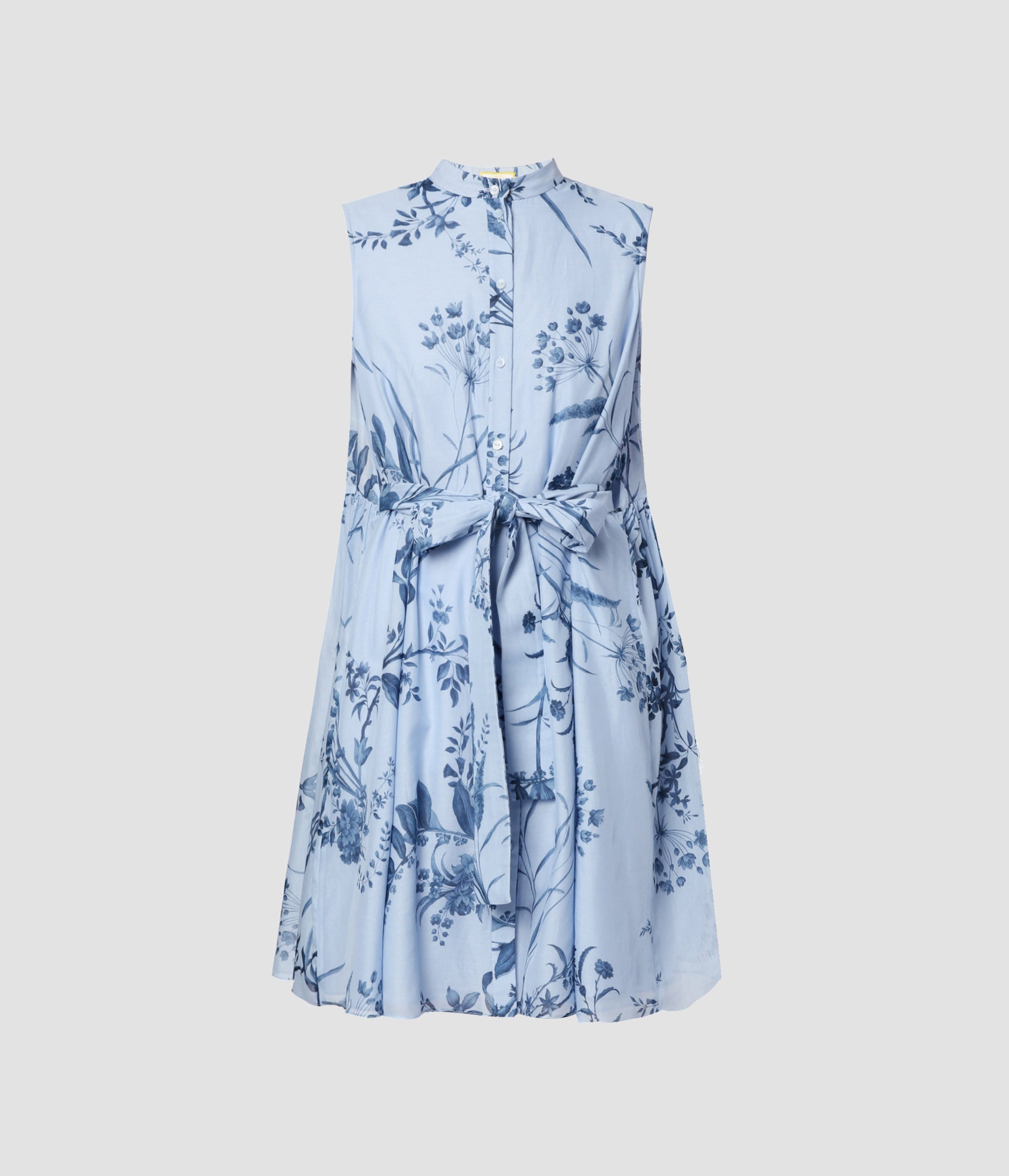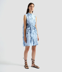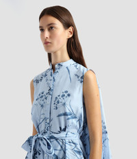 Designed with warm weather in mind, this mini dress is cut from lightweight cotton silk voile which has a slightly lustrous finish. Its relaxed silhouette is accented by a stand collar and tie-fastening drawstring waist. The Willow Palm print showcases a mix of grasses, palms, and wispy florals in shades of blue. Size and Fit Model is 5'10" and wears a size UK 8. Fabric and Care 72% Cotton, 28% Silk. Lining: 100% Cotton. Do Not Machine Wash / Delicate Dry Clean / Do Not Bleach / Do Not Tumble Dry / Cool Iron on Reverse.