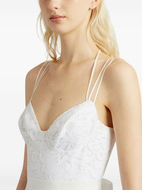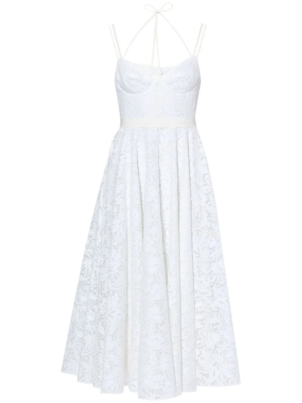 Rea strap-detail lace gown Highlights - White - Cotton blend - Floral-lace overlay - Sweetheart neck - Multiple spaghetti straps - Rear zip fastening - Cut-out detailing to the rear - Self-tie fastening waist - Full skirt - Curved hem - Ankle length Made in United Kingdom Composition Outer: Cotton 79%, Polyamide 21% Lining: Acetate 60%, Viscose 25% SIZE & FIT FittingInformation Designed for a close fit at the chest and waist with a loose fit at the hip