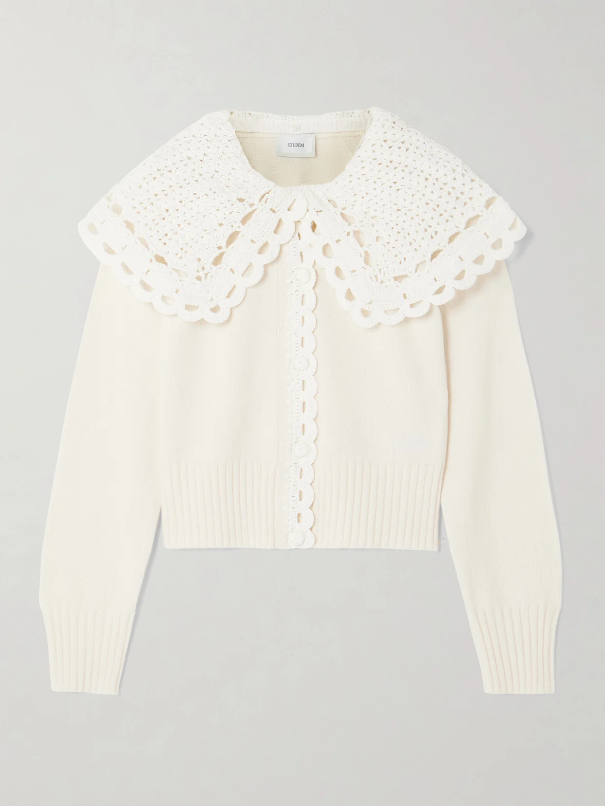 Erdem's cardigan has so much charm. It's knitted from merino wool-blend and overlaid with a gorgeous crocheted organic cotton collar that extends out to the shoulders - it can also be detached for a simpler look. Match the 'Alabaster' shade with pearl jewelry.