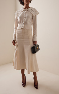 Lace-Collared Wool-Blend Cardigan ivory