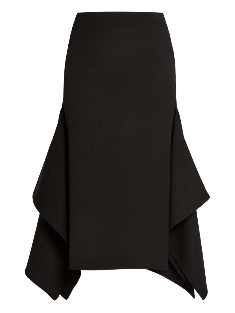 ruffled midi skirt Highlights - Black - Wool fabric - Asymmetric hem - Pencil shape - Layered ruffles - Midi length Made in United Kingdom Composition Outer: Virgin Wool 100% Lining: Silk 100% Washing instructions Dry Clean Only