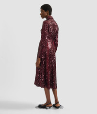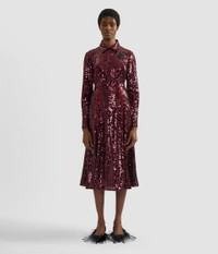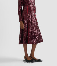 This mid-length skirt is cut from lightweight georgette and covered with scores of ruby-red sequins. Vertical stripes elongate the silhouette. - A-line silhouette - Slip lining - Midi length - Centre back hook, eye, and concealed zip fastenings - Product code: HO26_S44_50566001 Fits true to size. Fabric and Care Main: 100% Polyester. Sequins: 100% PET. Lining: 75% Acetate, 25% Silk. Dry clean.