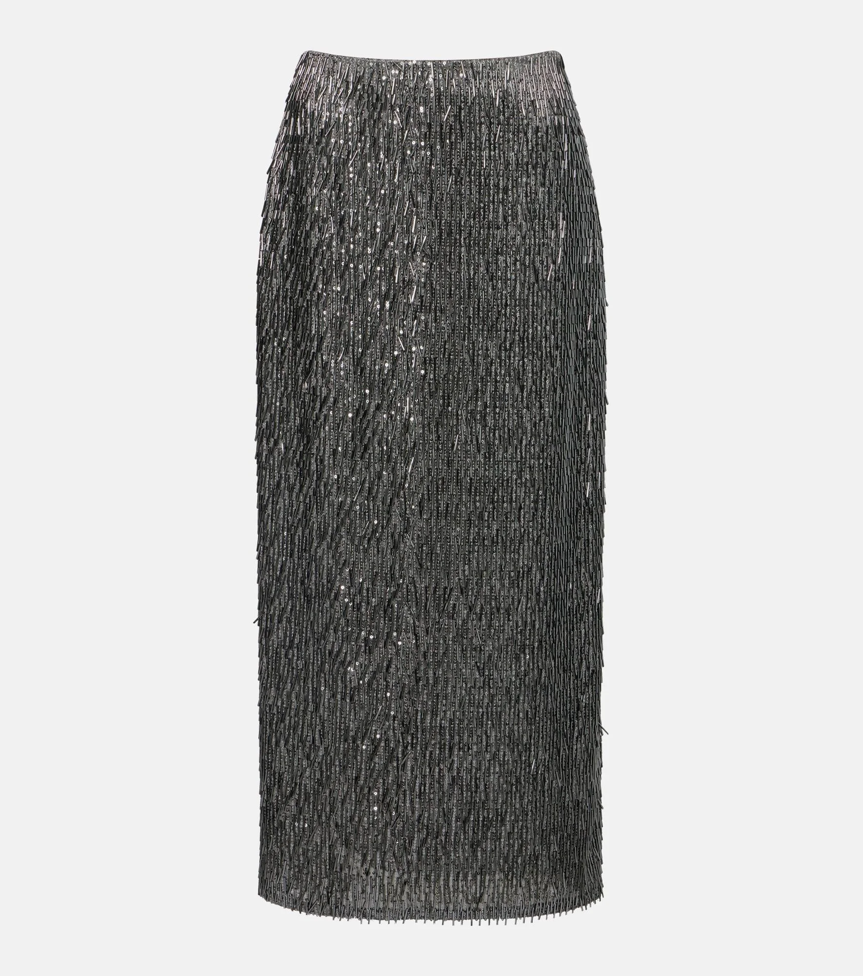 Incorporate modern romance into your edit with Erdem's whimsical and delicate designs. This high-rise pencil skirt boasts all-over sequins that add a shimmering touch and a textural twist to the ensemble. Product Details - Material: 95% polyester, 5% elastane - Care instructions: dry clean - Made in the UK - Designer color name: Gunmetal - Item color: silver - Details: 100% polyethylene - Lining: 100% silk - Trim: 100% cotton - Closure: concealed zipped back - Short vent - Item number: P01081964 Size & Fit - True to size - Non-stretchy fabric - The model seen in the picture is 178cm-5'10" and wearing a size UK 8