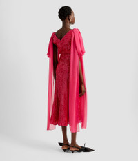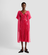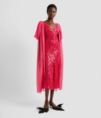 Embellished with scores of dazzling fuchsia sequins, this mid-length dress catches the light from every angle. It has a flattering V-neck and contrasting chiffon draping that begins at the shoulders and falls to the floor. Size and Fit Model is 5'10" and wears a size UK 6. Fabric and Care 100% Polyester. Sequins: 100% PET. Lining: 73% Acetate, 27% Silk. Do Not Machine Wash / Delicate Dry Clean / Do Not Bleach / Do Not Tumble Dry / Cool Iron on Reverse.