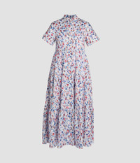 With a tiered, ankle-length skirt, this lightweight cotton dress shapes a relaxed silhouette. It is printed with an abstract floral in shades of blue and pink. - Relaxed silhouette - Unlined - Ankle length - Point collar - Short sleeves - Tiered hem - Centre front button fastenings - Product code: PF25_D916_50139000 Fits true to size.Model is 5'10" (178cm) and wears a size UK 8. Fabric and Care 100% Cotton. Dry clean.