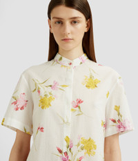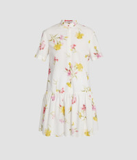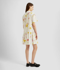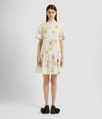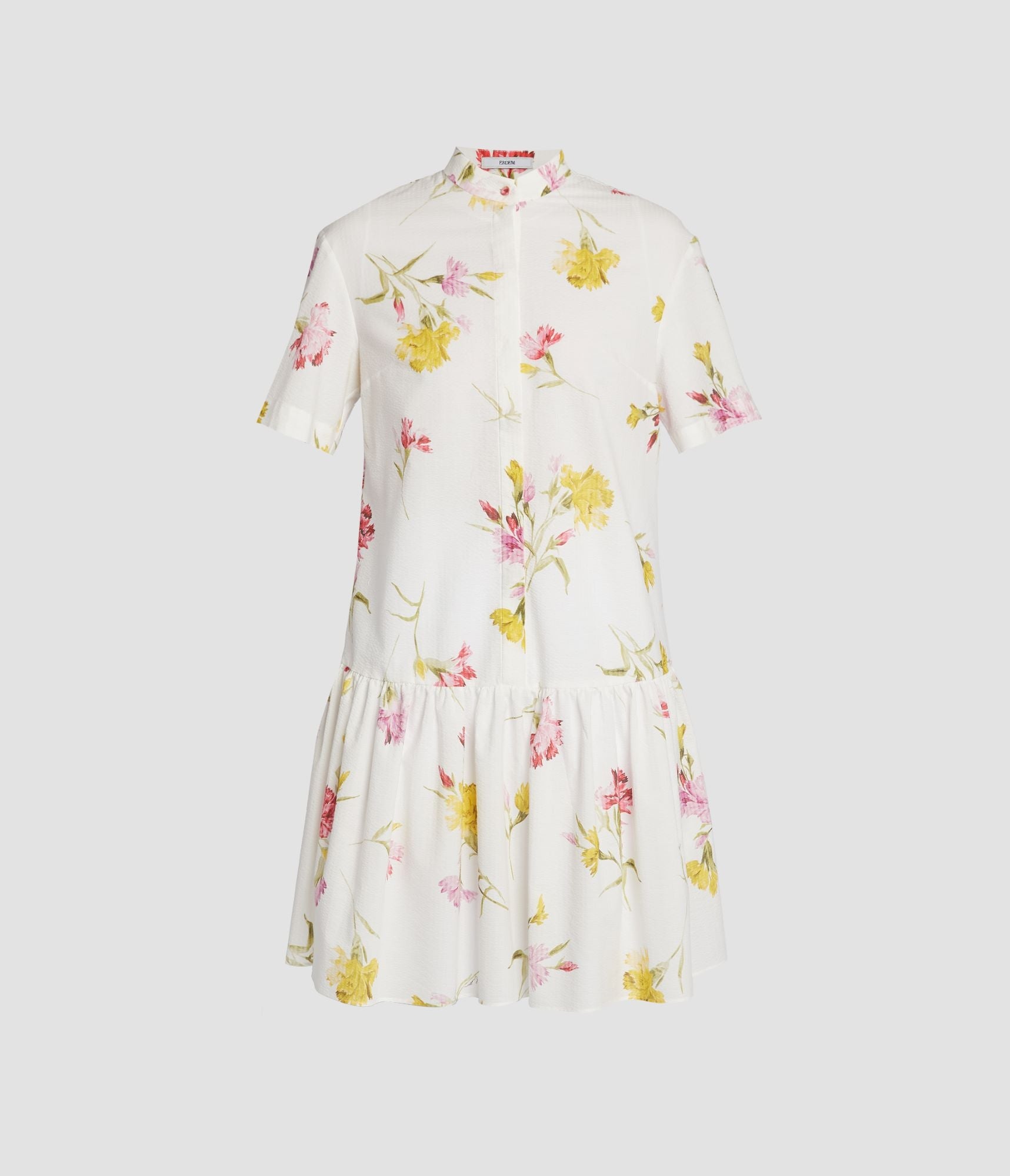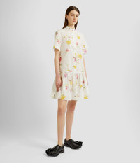 Shaped for an easy fit, this knee-length dress has a stand collar and drop waist. It is made from white cotton seersucker that’s printed with carnations. Relaxed silhouette Partially lined Knee length Stand collar Half-length sleeves Centre front concealed button-fastening placket Drop waist Product code: SS25_D50_MDCSC Fits true to size. Model is 5'11 (180cm) and wears size UK 6. Fabric and Care 100% Cotton. Dry clean.