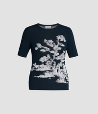 Knitted from viscose using a jacquard technique, this fitted navy top features a white tree design. - Classic silhouette - Dense knit - Crew neck - Short sleeves - Product code: PF25_KT20_30054001 Fits true to size. Fabric and Care 70% Viscose, 30% Polyester. Dry clean.