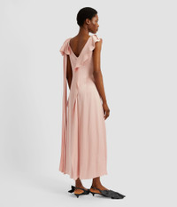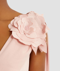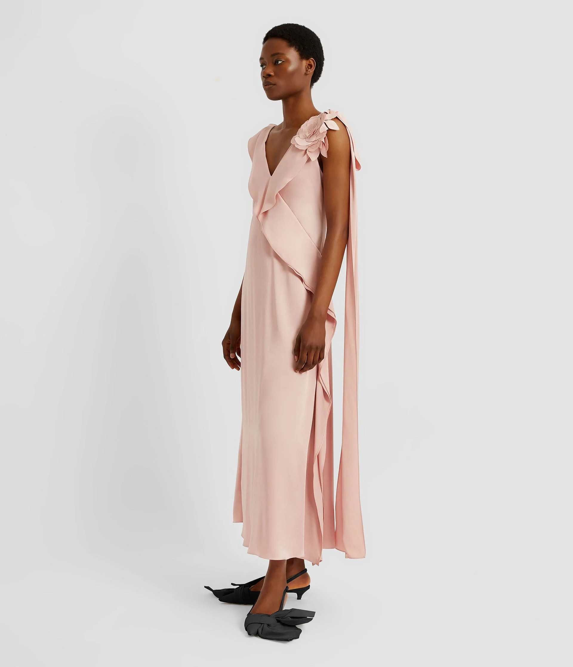 This slipper pink satin slip dress is crafted with a waterfall drape and a tonal 3D flower applique. - Relaxed silhouette - Unlined - Ankle length - V-neck - Sleeveless - Centre back hook, eye, and concealed zip fastenings - Product code: PF25_D112_50255005 Fits true to size.Model is 5'10" (178cm) and wears a size UK 8. Fabric and Care 71% Acetate, 29% Viscose. Lining: 100% Silk. Decoration: 66% Acetate, 24% Viscose, 10% Polyester. Dry clean.