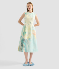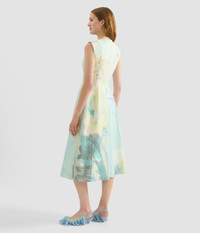 Made from multi-bonded canvas, this cocktail dress showcases one of Kaye Donachie dreamlike artworks. - Fit and flare silhouette - Fully lined - Ankle length - Crew neck - Sleeveless - Centre back hook, eye, and concealed zip fastenings - Product code: AW25_D155P_70148005 Fits true to size. Fabric and Care Canvas: 100% Cotton. Scuba Base: 92% Polyester, 8% Elastane.