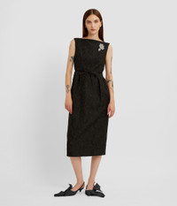 A boatneck, gathered hips, and tulip skirt define this mid-length dress. It is crafted from black embroidered cloque jacquard and features a crystal patch and a bow belt. - Pencil silhouette - Fully lined - Midi length - Boatneck - Sleeveless - Centre back vent - Centre back zip fastening - Product code: PF25_D32_80031000X Fits true to size.Model is 5'10" (178cm) and wears a size UK 8. Fabric and Care 83% Polyester, 17% Polyamide. Fabric 2: 72% Viscose, 28% Silk. Lining: 100% Silk.