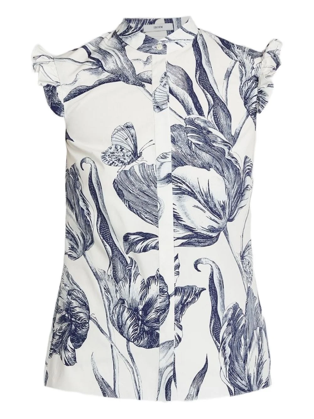 floral-print sleeveless shirt Highlights - Ivory and blue - Floral print - Ruffled detail - Sleeveless - Button fastening Imported Composition Organic Cotton 100% Washing instructions Dry Clean Only