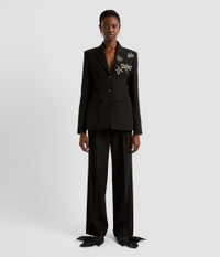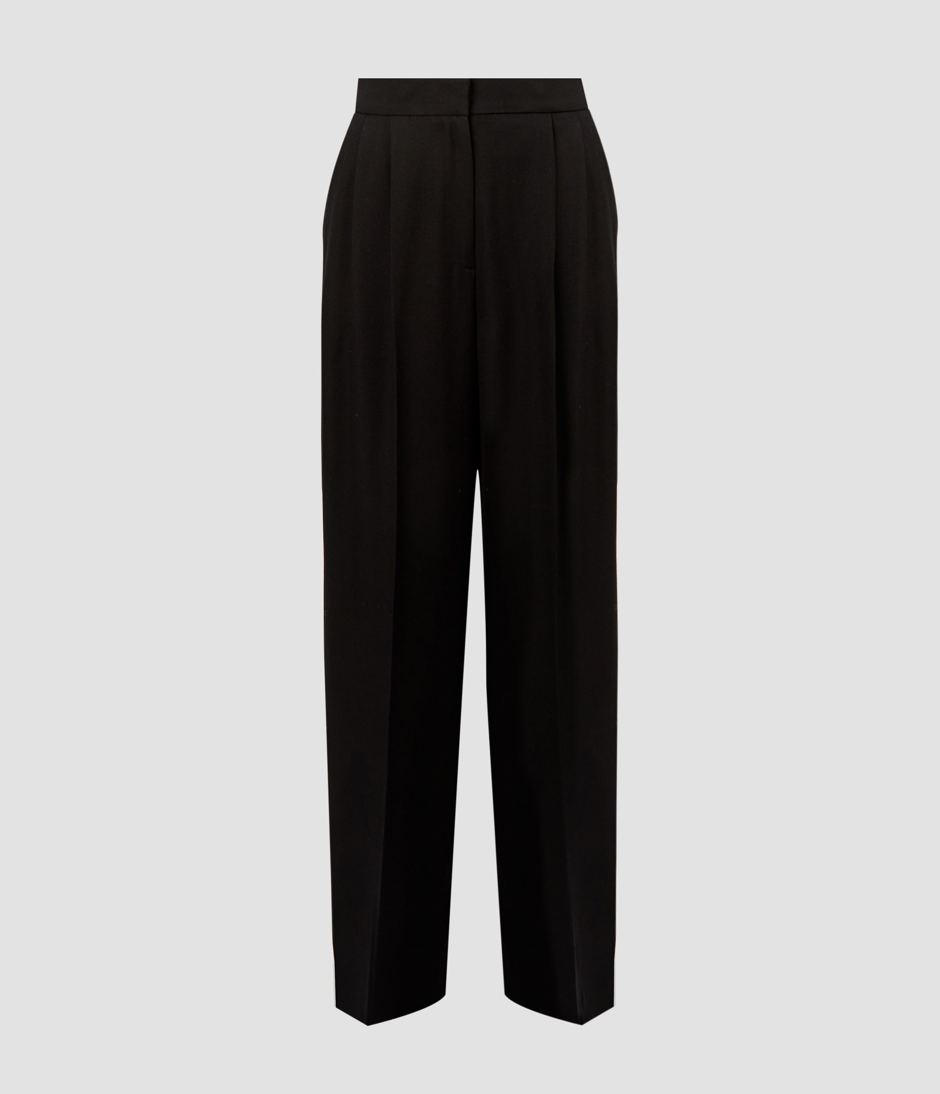 A pair of immaculately tailored black trousers is essential to every well-crafted wardrobe. These ones are made from wool grain de poudre and shaped for a classic, straight leg fit. Wear them with everything from crisp white shirting to pastel knitwear. Size and Fit Model is 5'10" and wears a size UK 6. Fabric and Care 100% Virgin Wool. Lining: 100% Silk. Do Not Machine Wash / Delicate Dry Clean / Do Not Bleach / Do Not Tumble Dry / Cool Iron on Reverse.