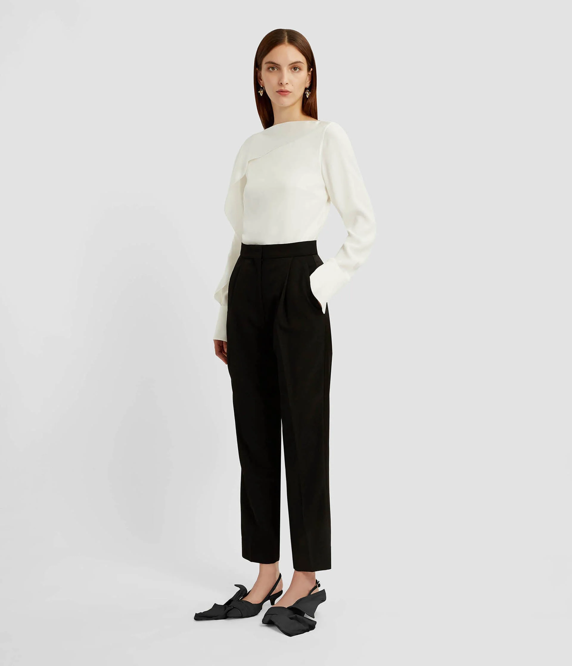 For Pre-Fall 25, Erdem has taken inspiration from the works of British contemporary artist, Kaye Donachie. Delicate hand-drawn motifs, created by Donachie, have been thoughtfully incorporated. An exploration and celebration of art, fashion, and the intersection between the two. Fabric and Care 100% Virgin Wool. Fabric 2: 61% Polyester, 39% Silk. Trim: 100% Cotton. Lining: 65% Polyester, 35% Cotton.