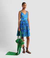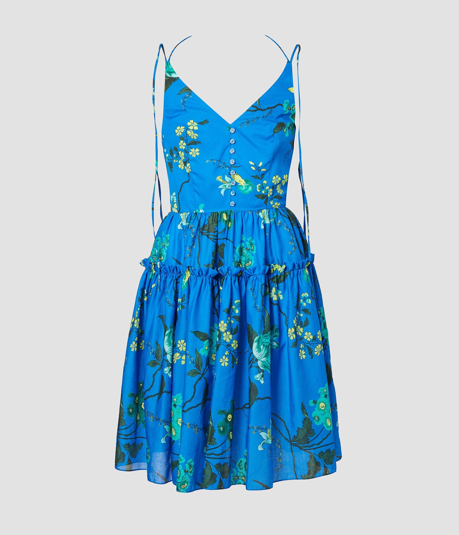 Cut from a lightweight cotton-blend, this blue dress is perfect for balmy summer days. It has fine, tie-fastening shoulder straps and a flattering V-neckline. Size and Fit Fits true to size. Model is 5'10" and wears a size UK 6. Fabric and Care 70% Cotton, 30% Linen. Lining: 100% Cotton